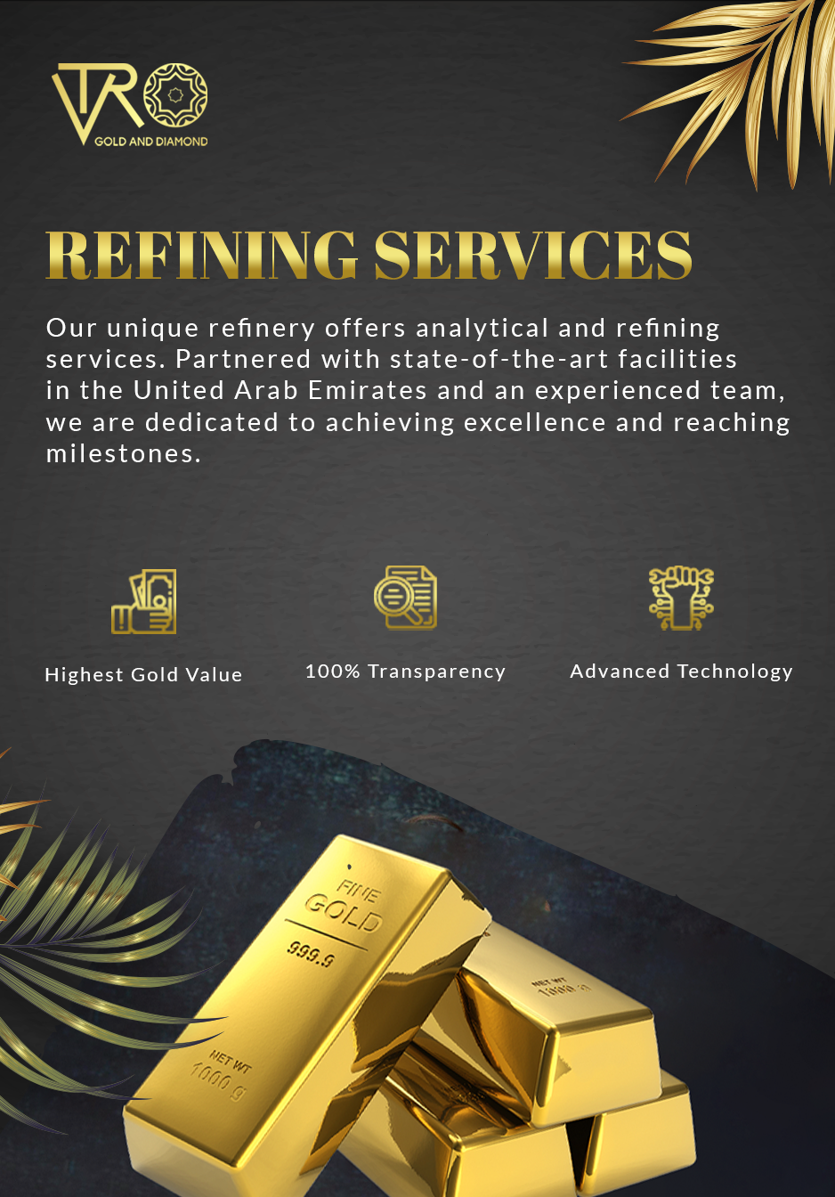 Our distinct refinery sets us apart, offering customers unparalleled analytical and refining services. Partnering with a cutting-edge facility in the United Arab Emirates, equipped with state-of-the-art technology, we ensure the highest standards of service. Supported by a seasoned team, we are dedicated to achieving excellence and reaching significant milestones.